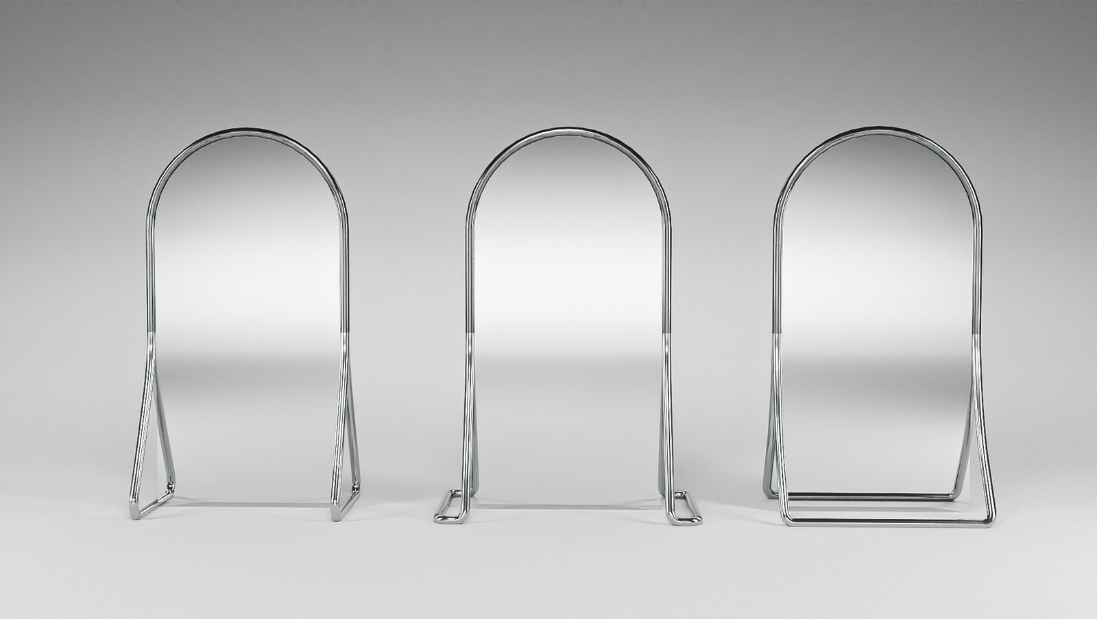 - Mirros : Arch-shaped, adjustable full-length mirrors with a curved metal frame, elevated to prevent damage.