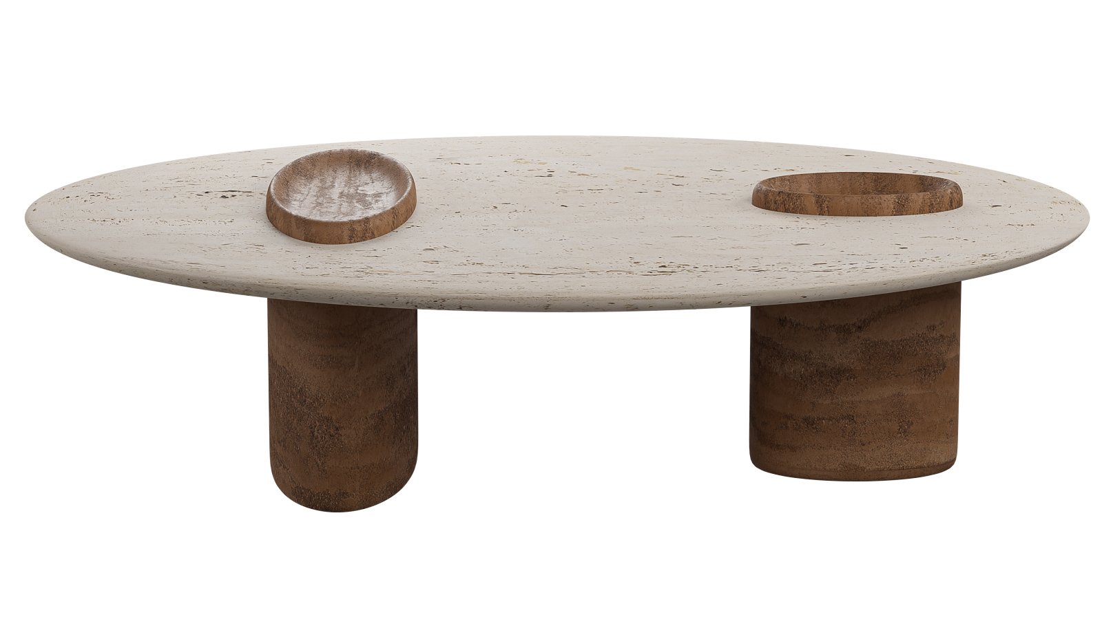 Each piece blends structure and organic curves, with an integrated bowl-like feature on top for display and functionality.