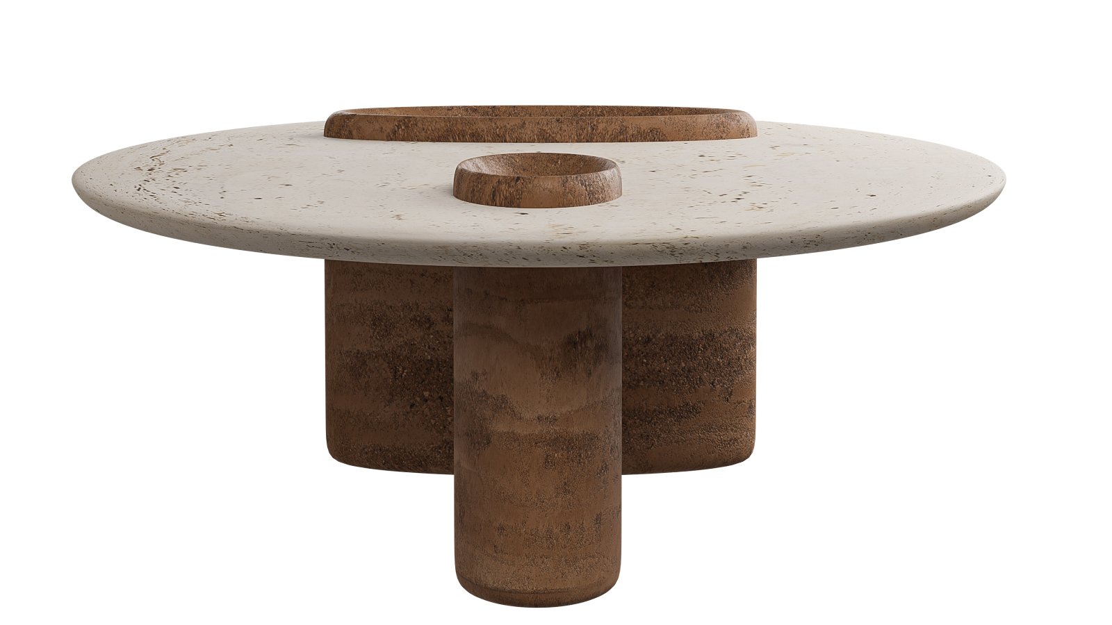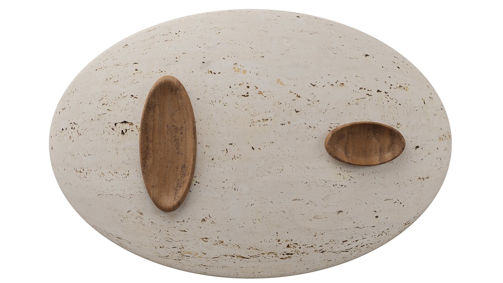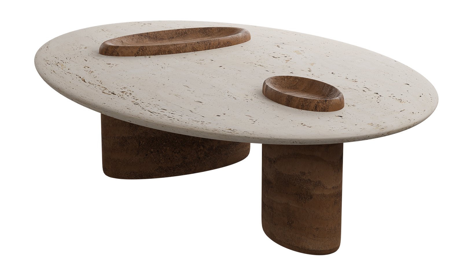 Travertino-Like Composite: A blend of bio-based resin (similar to the legs) with mineral fillers (ground limestone and marble dust) with a water-based sealant to replicate the look and texture of travertino stone.