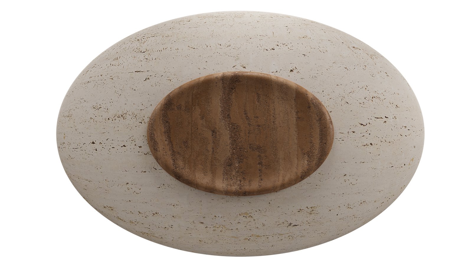Travertino-Like Composite: A blend of bio-based resin (similar to the legs) with mineral fillers (ground limestone and marble dust) with a water-based sealant to replicate the look and texture of travertino stone.
