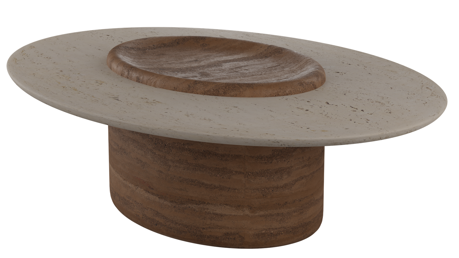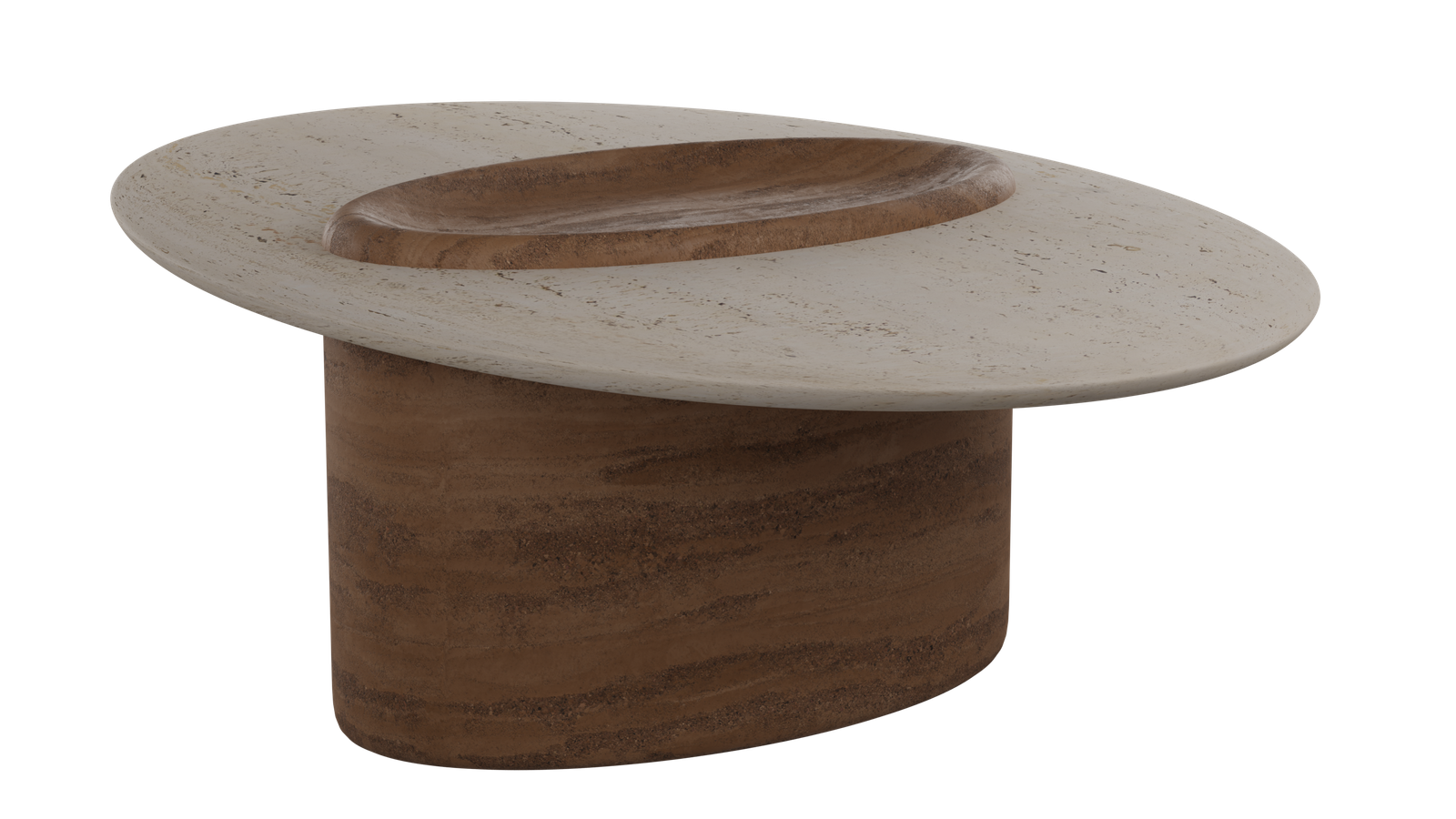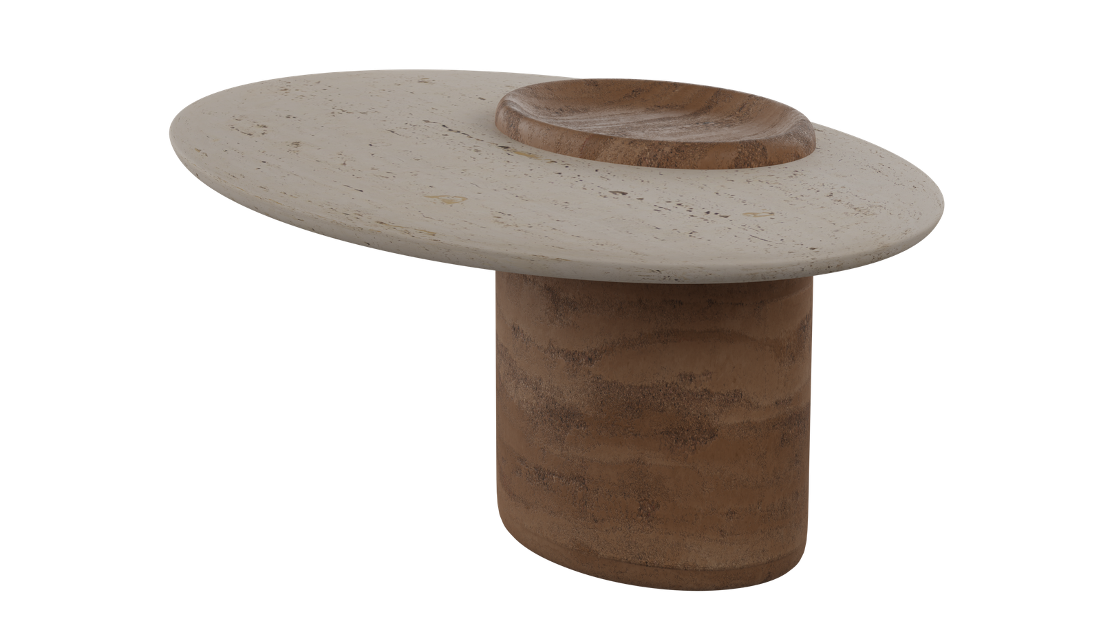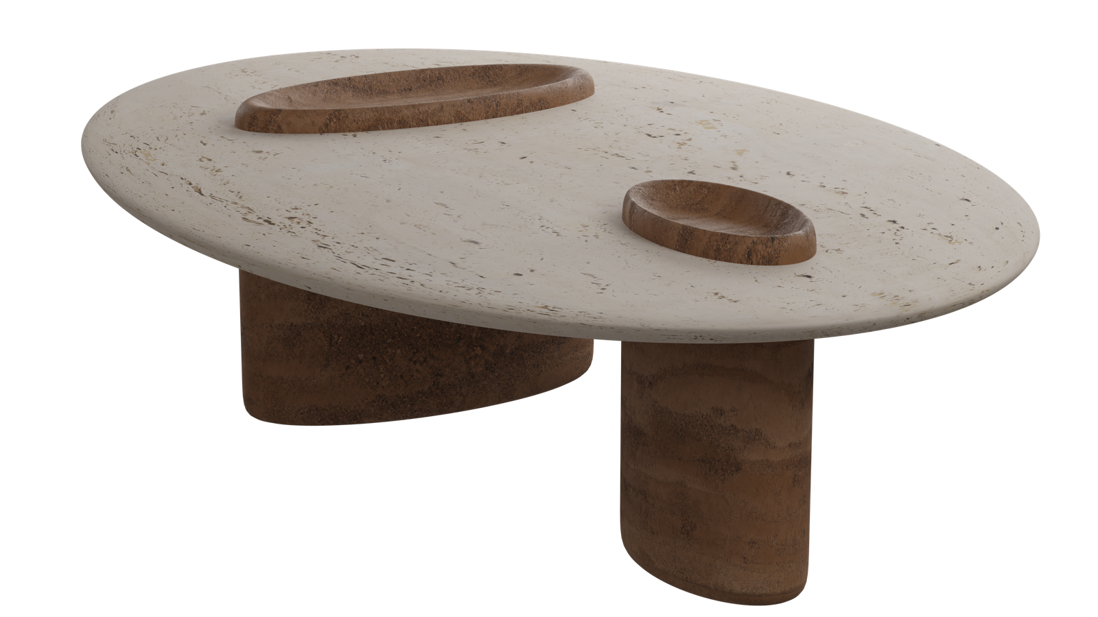 Travertino-Like Composite: A blend of bio-based resin (similar to the legs) with mineral fillers (ground limestone and marble dust) with a water-based sealant to replicate the look and texture of travertino stone.