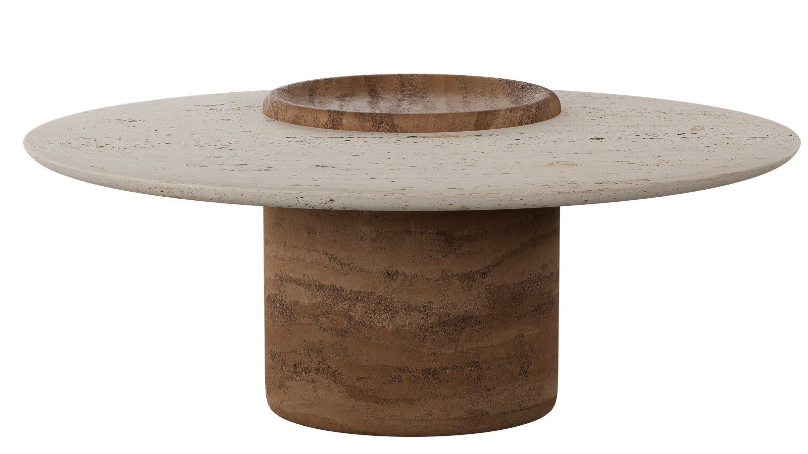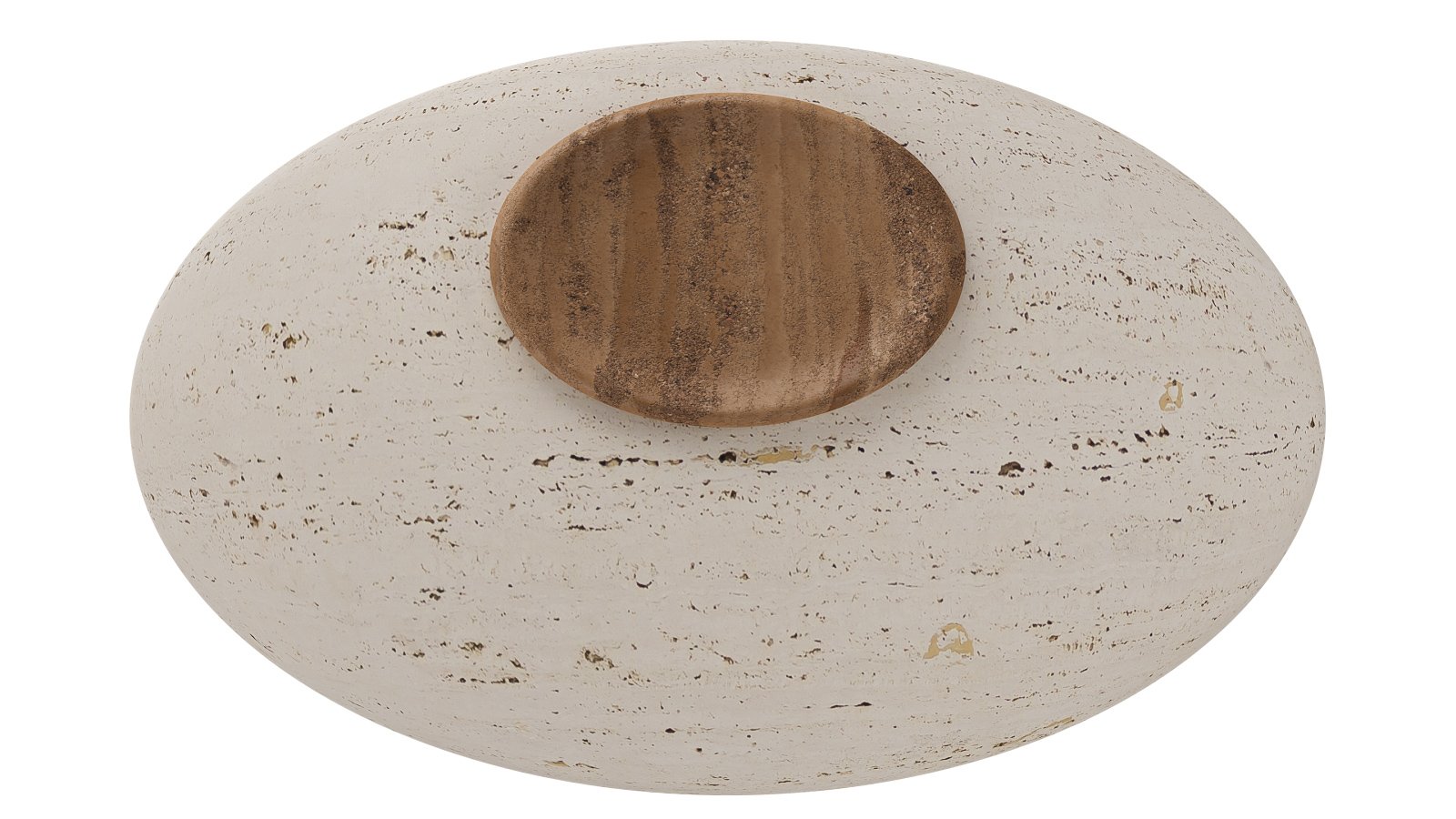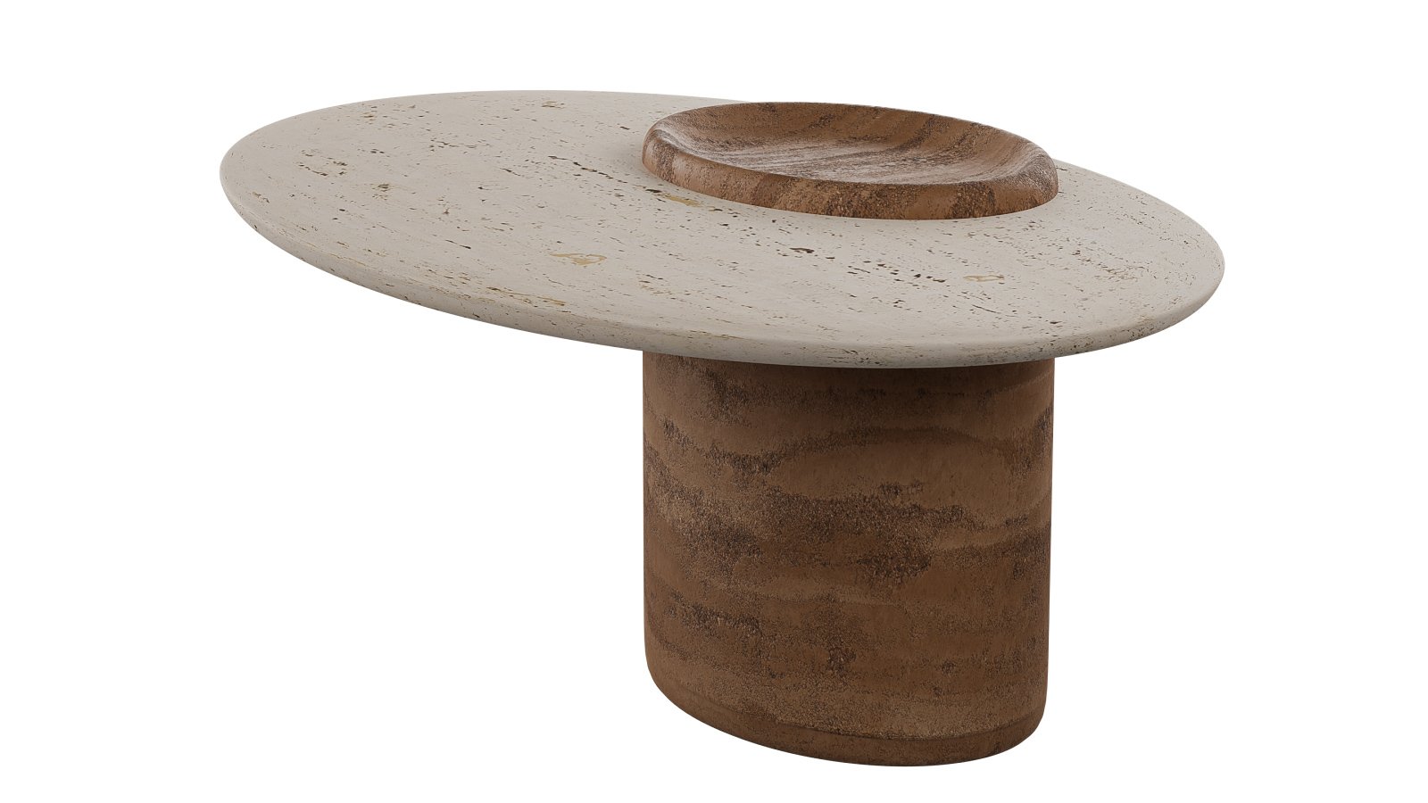 Travertino-Like Composite: A blend of bio-based resin (similar to the legs) with mineral fillers (ground limestone and marble dust) with a water-based sealant to replicate the look and texture of travertino stone.
