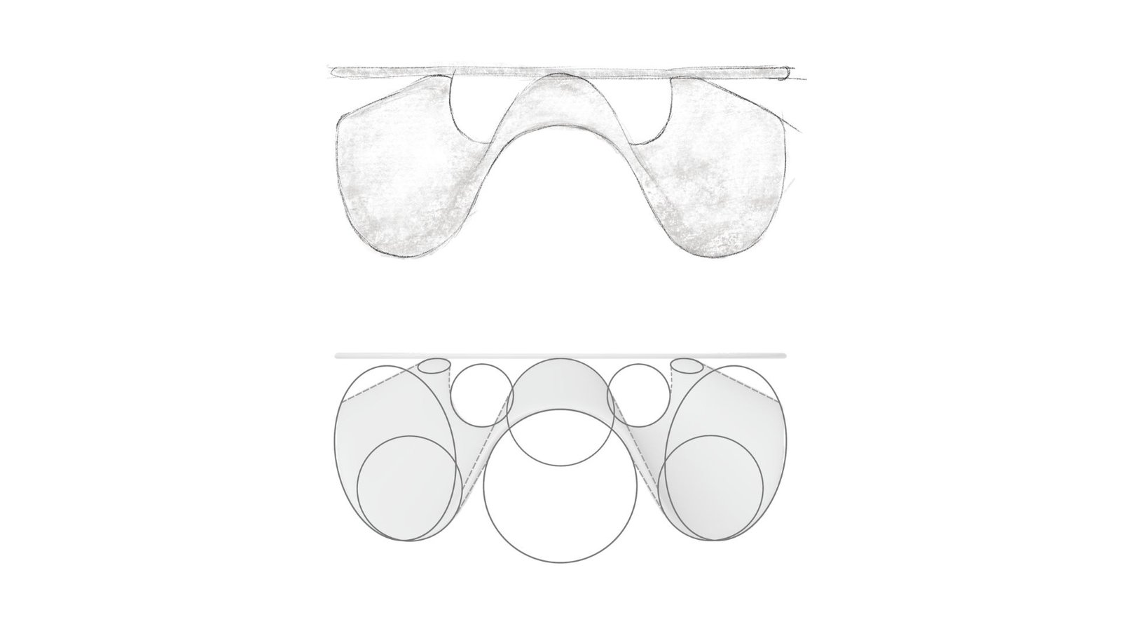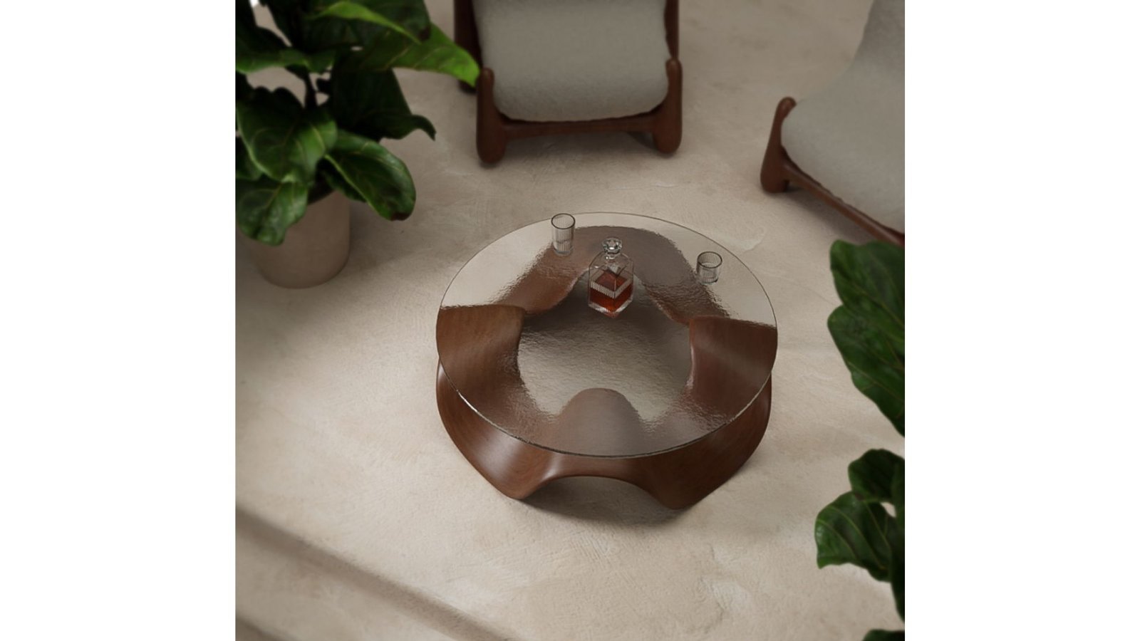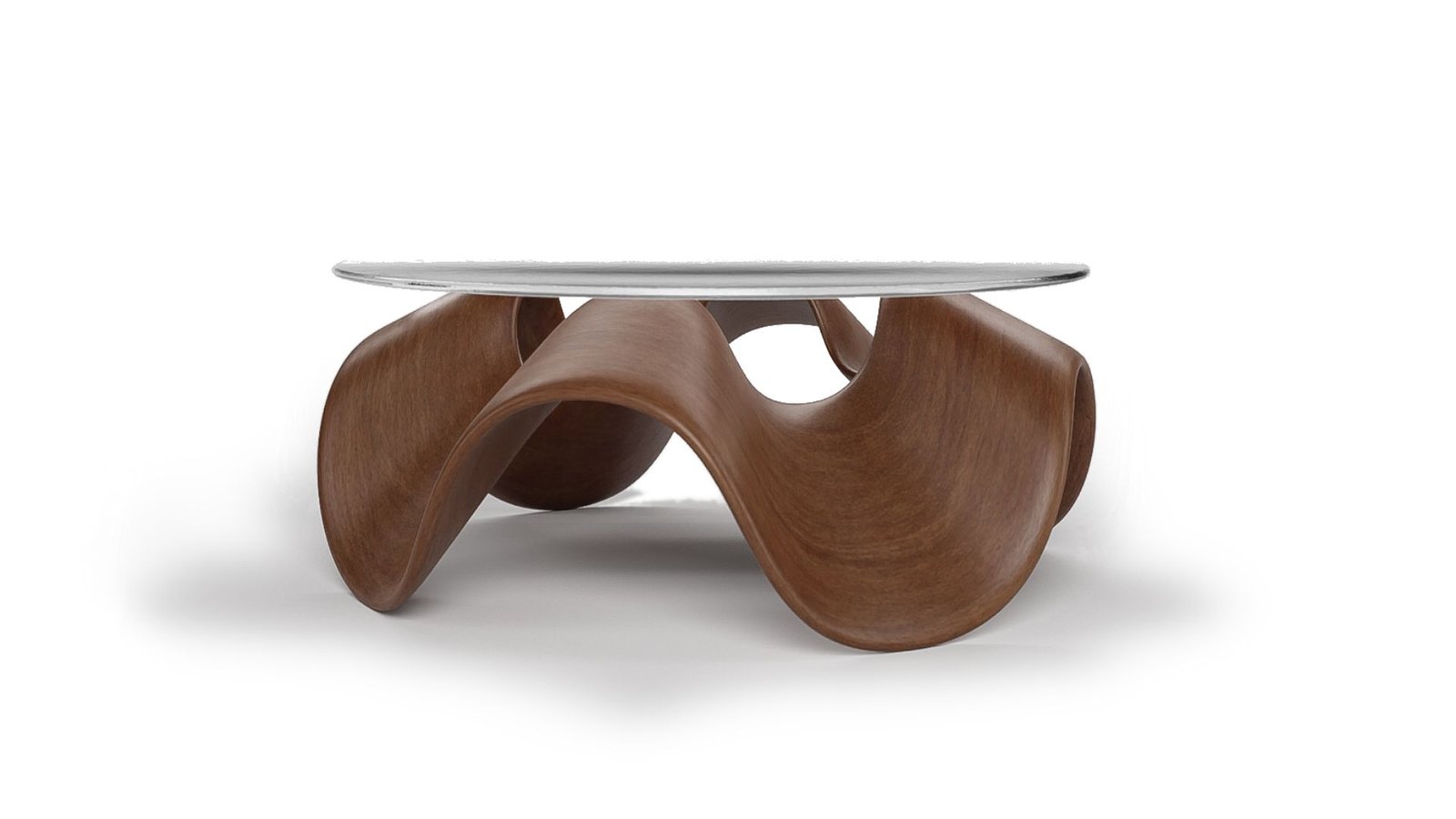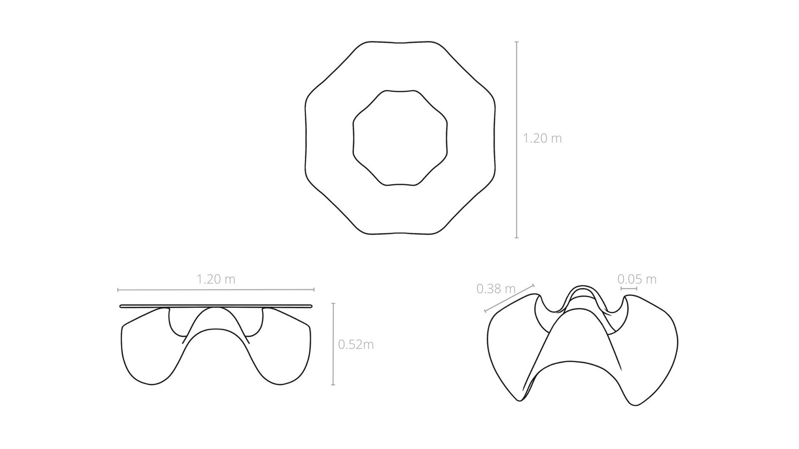 - Three-Dimensionality and Base Completion : To add depth, a scaled-down copy of the shape is placed on top, completing the base. A 60cm radius glass circle serves as the table top.