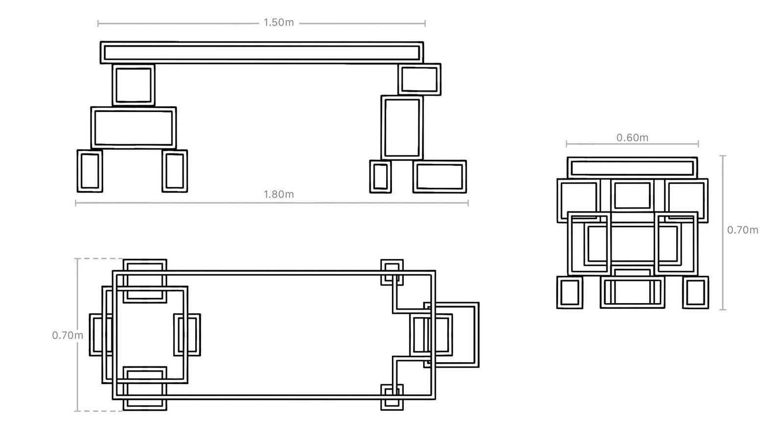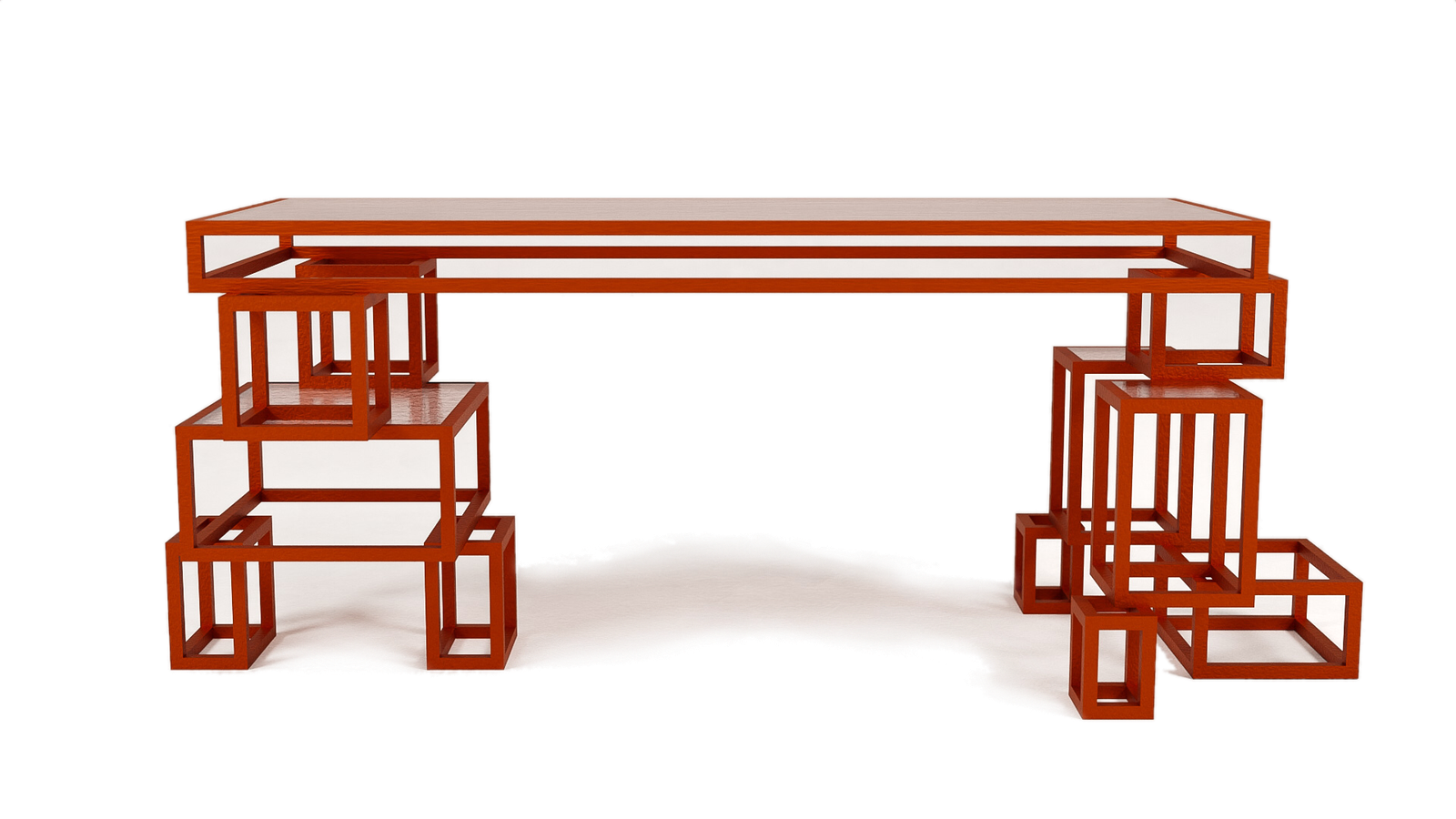 Exploring the composition of 90° angles, the Tabloc table masterfully uses rectangles of varying sizes to create its unique top supports. Inspired by the structural essence of an unfinished building, Tabloc embodies the raw beauty of beams and outlines. This design conveys a sense of rigidity and coldness, celebrating the foundational stages of construction.