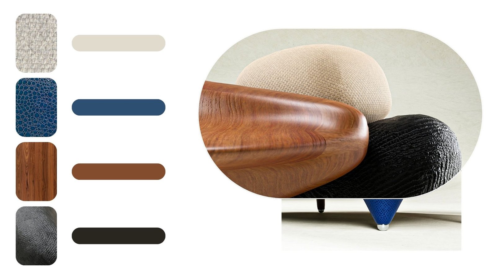 - Feet Finish : Finished with vegan blue leather, inspired by the bright blue feet of a specific toucan species, adding a vibrant and refined detail.
